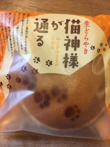 宮城県の村田町には猫に纏わり石碑が多い。町はそれにちなんだ生ドラヤキを販売してる。それがこれである: