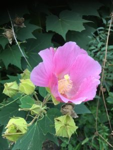 散歩の途中の市民センターに咲いていた「芙蓉(フヨウ)」の花。